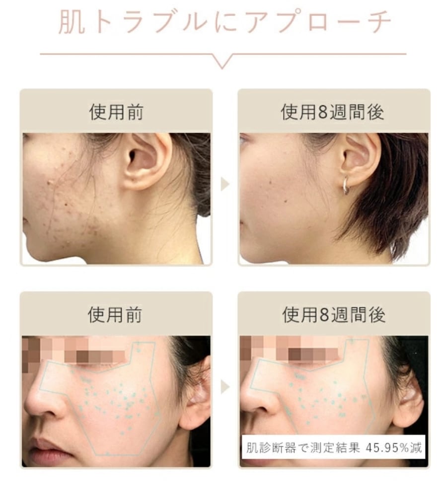 ハリのある美しい肌へと導きながら、赤み・くすみなどが目立ちにくいキメの整った健やかな肌へ導きます。