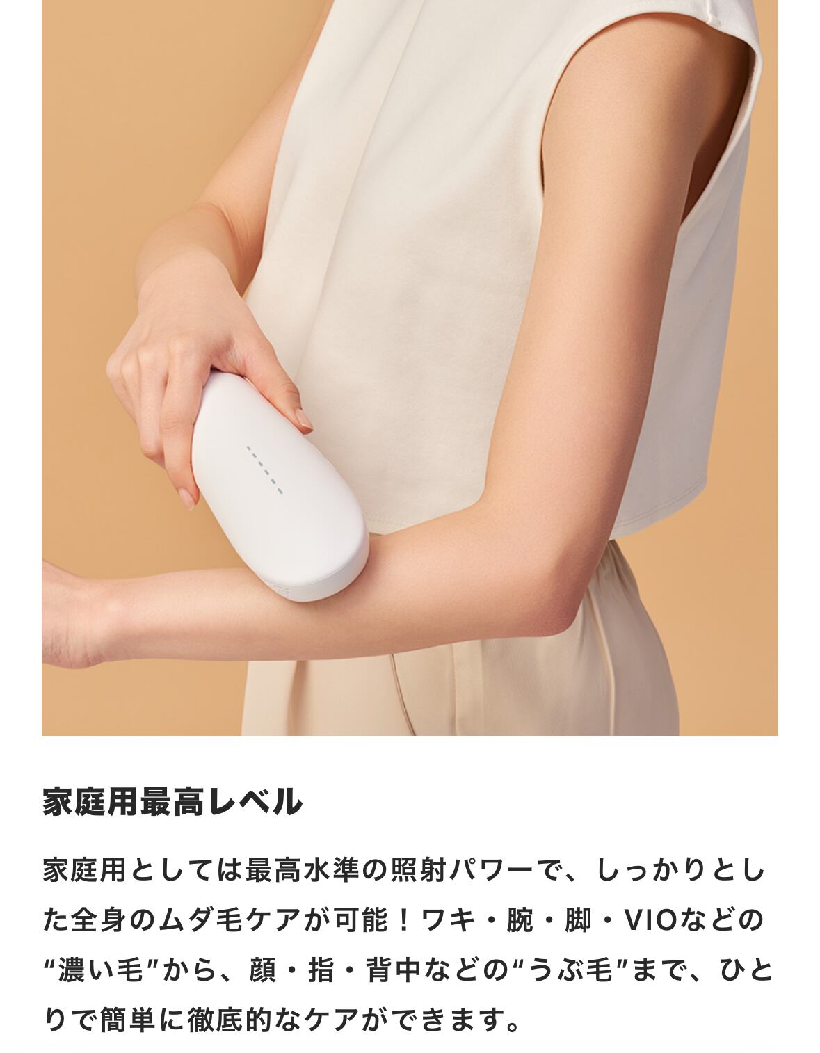 本製品は、医療機器や永久脱毛機器ではありませんが、継続的なご利用で、ムダ毛の目立ちにくい肌を保つことができます。